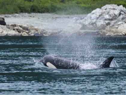 Today has been another amazing day of exploration among the islands of Southeast Alaska. We started in Idaho Inlet watching sea otters feeding on crabs, and the ocean was so calm that we could actually hear the crunching of crab legs. After breakfast, we moved to the Inian Islands, which are a group of islands constricting the flow of water moving into Icy Strait. As the tide rises, immense amounts of water flow through the passage, bringing innumerable salmon swimming in on the fast currents.