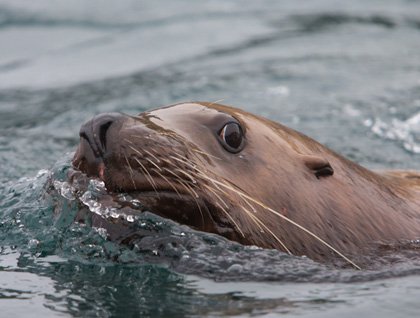 As National Geographic Sea Lion navigated around the Inian’s, we encountered a young humpback whale very actively engaged in what seemed to be some kind of play with a group of Steller sea lions; they splashed around and came very close to us a couple of times, regaling us with a great view of the baby whale swimming just under the surface.