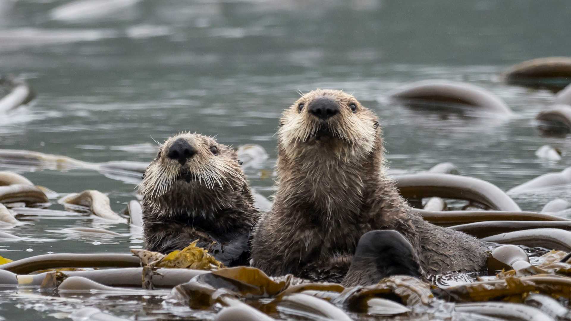In calm water, sea otters rested in kelp beds while their pups slept on their chests. Bull kelp pointed the direction of the incoming tide. Rougher water brought the Steller sea lions out to feed. The waters burst with the leaping pink salmon. We watched a sea lion take a salmon and turn the fish in its mouth, so that it was head-first. Then the sea lion swallowed it whole. A curious group approached our Zodiac. Some seemed to brave a closer look then dive for the safety of the turbulent sea.