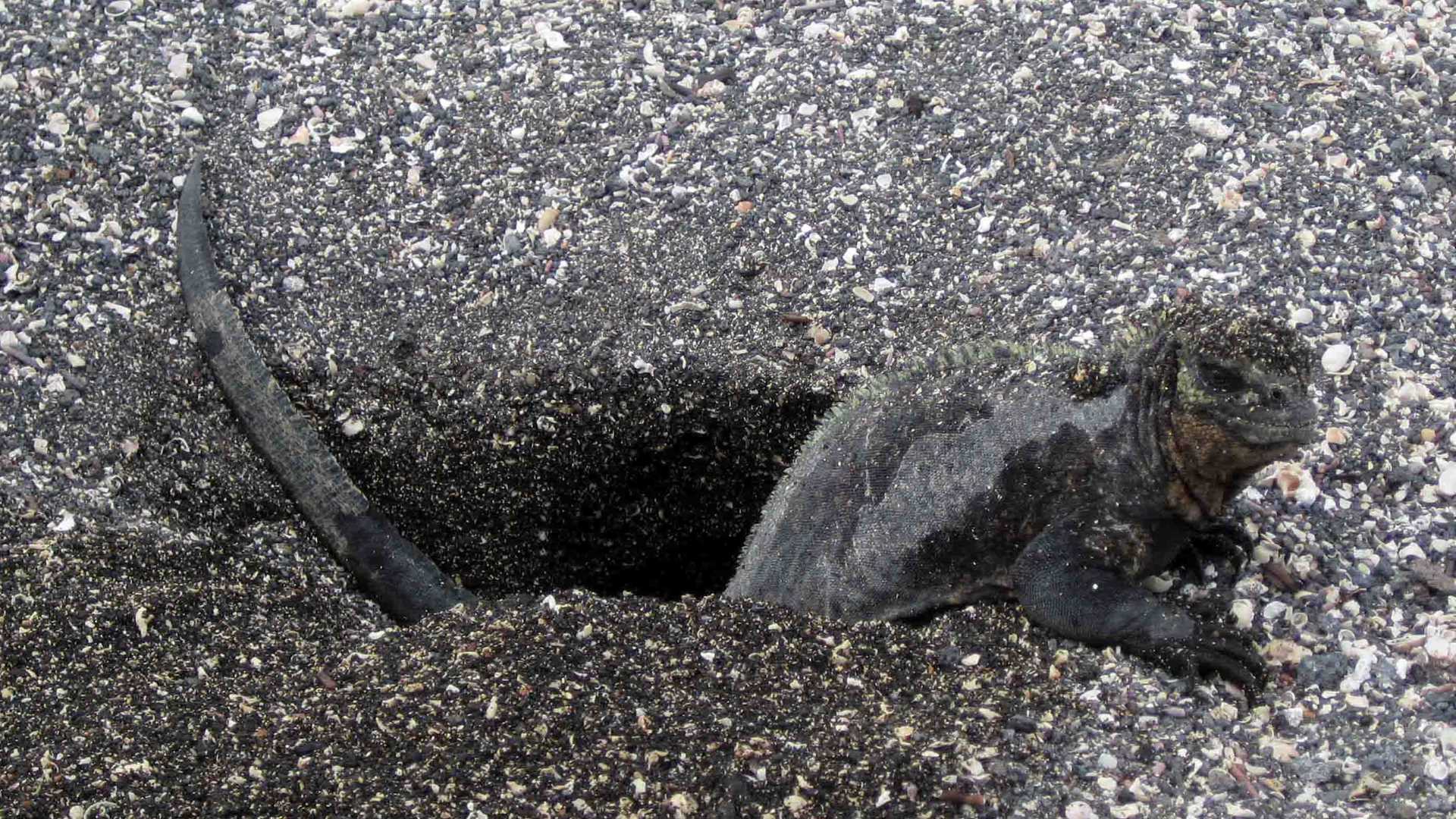 After lunch, I gave a human history talk, bringing up past events that changed Galapagos forever. Then as the afternoon cooled off we took the Zodiacs for a dry landing on the lava shores of Punta Espinosa, Fernandina Island. A great number of marine iguanas laid down on the rocks, tried to keep warm together as if preparing for a cold night, while behind them, along the sandy beach, a great number of female iguanas were digging nest holes, removing sand using their fore and hind limbs. Along the shallows, pup sea lions played, chasing each other, under the vigilant sight of a big male sea lion. We arrived to the flightless cormorant nesting area, observing as this fearless creature jumped from the water, walked a few steps and then stopped to dry their stumpy wings close to us, undeterred by our presence.