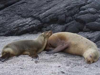 For the afternoon we disembarked at Punta Espinoza, in Fernandina Island, home for a couple of thousand marine iguanas. The tide was very low and it was amazing to see lots of these odd looking sea creatures coming back home from foraging at sea.
