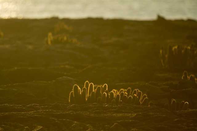 We woke up early in the morning as National Geographic Islander navigated along the northern part of Isabela Island. Slowly the sun appeared above the clouds surrounding Volcano Wolf. We spotted our first birds as Galapagos fur seals returned to shore from their night hunt. We enjoyed a great breakfast. Afterward, expedition leader Vanessa called everyone to the bow to celebrate as we crossed the equator. Our guests happily crossed the line. Approaching Punta Vicente Roca, the visitor site, we spotted Galapagos sea lions and a good number of ocean sunfish. The first activity of the day took place as we dropped anchor at Punta Vicente Roca. This is a spectacular geological site. The combination of the former volcano’s tall cliffs and the tuff cones formed later adds an amazing contrast to this unique visitor site. Our best tools for exploration, our Zodiacs, were lowered down, and off we went to explore the coast. We observed Nazca boobies and blue-footed boobies resting on the small ledges of the tuff cones. Galapagos sea lions swam close to our Zodiac, and Galapagos penguins rested on a broken piece of the tuff cone after feeding. What a wonderful sight! In a calm area, we found a good number of Pacific green sea turtles. The morning’s activities ended with snorkeling. Pacific green sea turtles, plenty of colorful fish, Galapagos marine iguanas and flightless cormorants surrounded us. It was a phenomenal experience! The ship was repositioned toward Fernandina Island. The youngest island of the archipelago, Fernandina is a highlight of our expedition. This island shows our guests the beginning of life. We observed animals thriving in the hostile environment. Pioneer plants like lava cacti grow on the lava fields, breaking down rocks little by little to create soil for the next generation of plants. Punta Espinoza is known for its huge colony of Galapagos marine iguanas. It is hard to distinguish the iguanas from rocks since they are so dark in color. On the other hand, colorful Sally Lightfoot crabs added contrast to the young, dark lava fields. We ended our walk as the sun was setting, returning to the ship with great memories. It was a fantastic day in the western part of the archipelago.