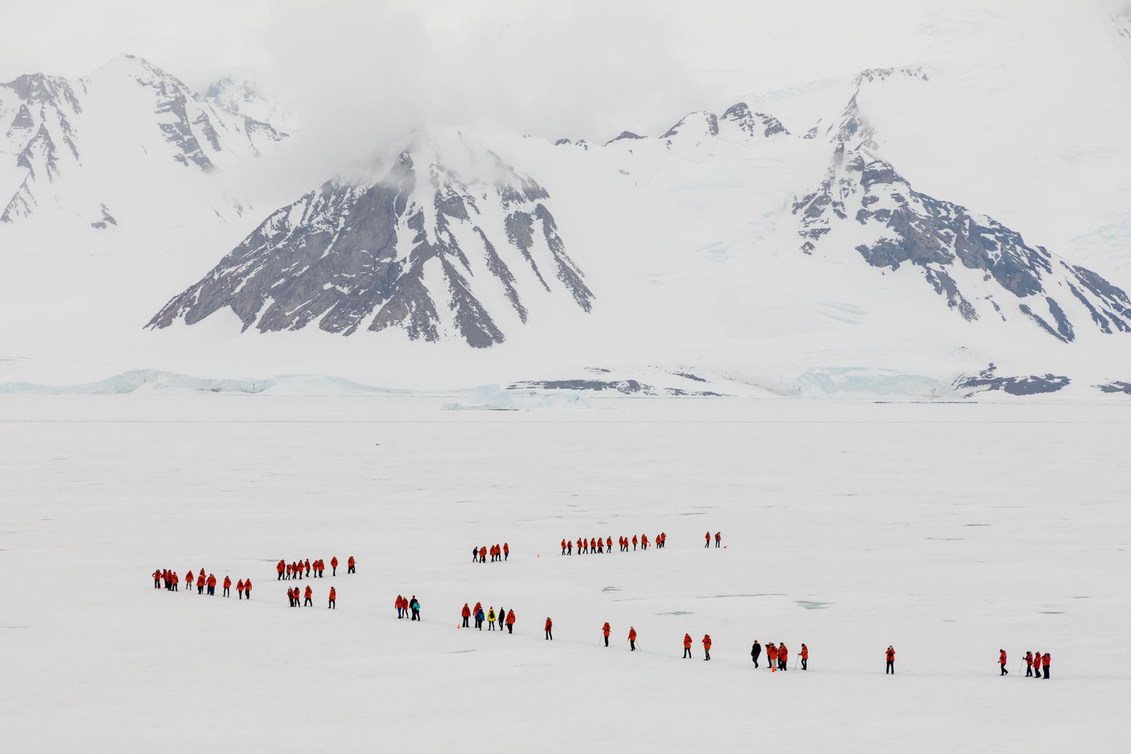 We woke up early in the morning as National Geographic Islander navigated along the northern part of Isabela Island. Slowly the sun appeared above the clouds surrounding Volcano Wolf. We spotted our first birds as Galapagos fur seals returned to shore from their night hunt. We enjoyed a great breakfast. Afterward, expedition leader Vanessa called everyone to the bow to celebrate as we crossed the equator. Our guests happily crossed the line. Approaching Punta Vicente Roca, the visitor site, we spotted Galapagos sea lions and a good number of ocean sunfish. The first activity of the day took place as we dropped anchor at Punta Vicente Roca. This is a spectacular geological site. The combination of the former volcano’s tall cliffs and the tuff cones formed later adds an amazing contrast to this unique visitor site. Our best tools for exploration, our Zodiacs, were lowered down, and off we went to explore the coast. We observed Nazca boobies and blue-footed boobies resting on the small ledges of the tuff cones. Galapagos sea lions swam close to our Zodiac, and Galapagos penguins rested on a broken piece of the tuff cone after feeding. What a wonderful sight! In a calm area, we found a good number of Pacific green sea turtles. The morning’s activities ended with snorkeling. Pacific green sea turtles, plenty of colorful fish, Galapagos marine iguanas and flightless cormorants surrounded us. It was a phenomenal experience! The ship was repositioned toward Fernandina Island. The youngest island of the archipelago, Fernandina is a highlight of our expedition. This island shows our guests the beginning of life. We observed animals thriving in the hostile environment. Pioneer plants like lava cacti grow on the lava fields, breaking down rocks little by little to create soil for the next generation of plants. Punta Espinoza is known for its huge colony of Galapagos marine iguanas. It is hard to distinguish the iguanas from rocks since they are so dark in color. On the other hand, colorful Sally Lightfoot crabs added contrast to the young, dark lava fields. We ended our walk as the sun was setting, returning to the ship with great memories. It was a fantastic day in the western part of the archipelago.