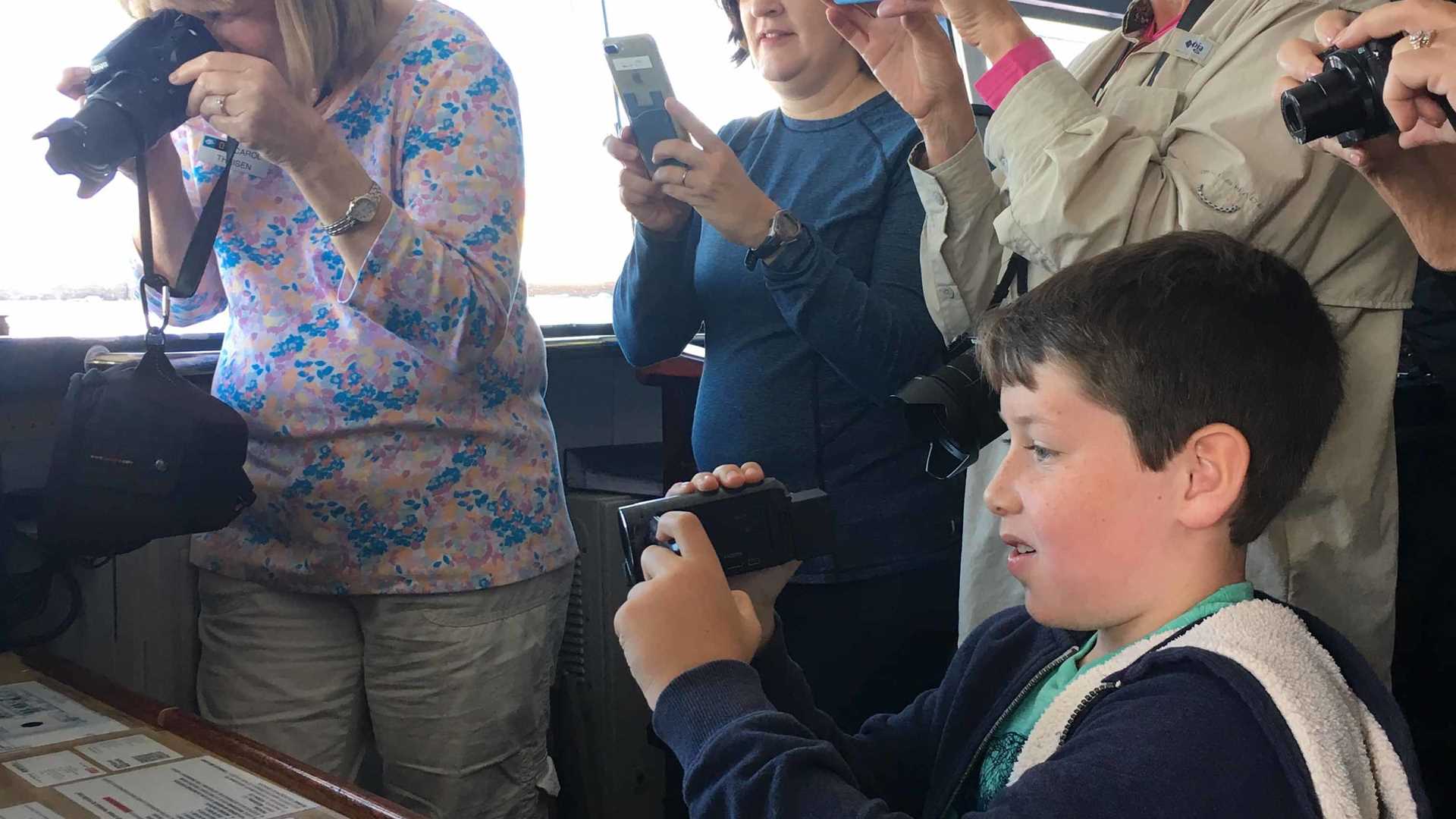 As I made my ‘early-risers wake-up call’ at 6 a.m., the sun popped up – a fiery yellow ball that soon disappeared behind a low cloud bank. It was a glorious morning and we gathered on deck with binoculars and searched the smooth glass ocean for dolphins and whales. Seabirds soared and we saw the rare endemic dark-rumped petrel. In the distance, we observed several leaping mobula rays, and watched a flying fish escape the ship’s bow and sail many meters over the waves. We then detected suspicious splashes far to the north, and our first mate Patricio turned National Geographic Islander so we could investigate. We were happy to find a pod of common dolphins leaping ahead of us!