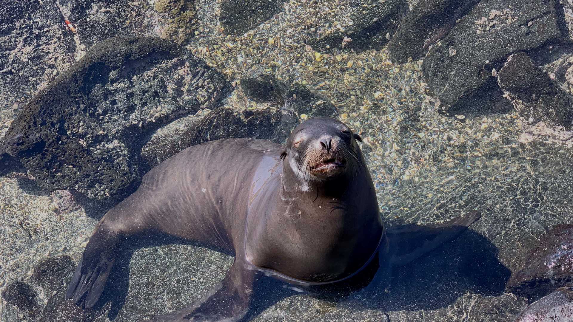 On National Geographic Endeavour II today, we explored Bartolome, home of a small colony of Galapagos penguins. Bartolome is one of the youngest islands, and it is located next to Santiago Island in the central part of the archipelago. After an amazing sunrise, we went ashore for a walk, and we were transported back to a time when the land was newly formed. We began our day by hiking to the top of a tuff cone known as the islet of Bartolome, named after the First Officer of The Beagle . Walking on this young island allowed us to understand the formation and volcanism of the Galapagos Islands. The rocks are a great way to understand the area and its geology. We spotted a few lava lizards and painted locusts, some of the very few animals on this island. As we reached the top, we had a great view. Our guests enjoyed the magnificence of Pinnacle Rock. After we visited one of the most iconic geological formations of the Galapagos, our breakfast was enhanced by dramatic views of the impressive volcanic landscape. We visited the beach near Pinnacle Rock, where we enjoyed how the sun made the sand sparkle due to a concentration of silica. Later, we went snorkeling along the channel between Santiago and Bartolome Islands. Many of our guests spotted whitetip reef sharks and very colorful parrotfish. The landscape was beautiful with lots of sea stars. We enjoyed the chance to be surrounded by Galapagos penguins and feel accepted as part of this environment. After a delicious Mexican lunch, we had lectures on the photography of reptiles and Darwin. Afterwards, we went to Chinese Hat Islet to snorkel from the Zodiacs. The area is home to a small colony of Galapagos penguins. In a sandy-bottomed, sheltered channel, our guests enjoyed swimming with whitetip reef sharks, rays, and many fish. It was a nice and sunny afternoon. After snorkeling, we had the chance to explore the unique, small volcano that formed an island in front of Santiago on a sunset Zodiac ride. After a spectacular day full of activities in the field, we returned on board. Every day in the Galapagos is an opportunity to reconnect with the beauty of nature through unbelievable encounters!