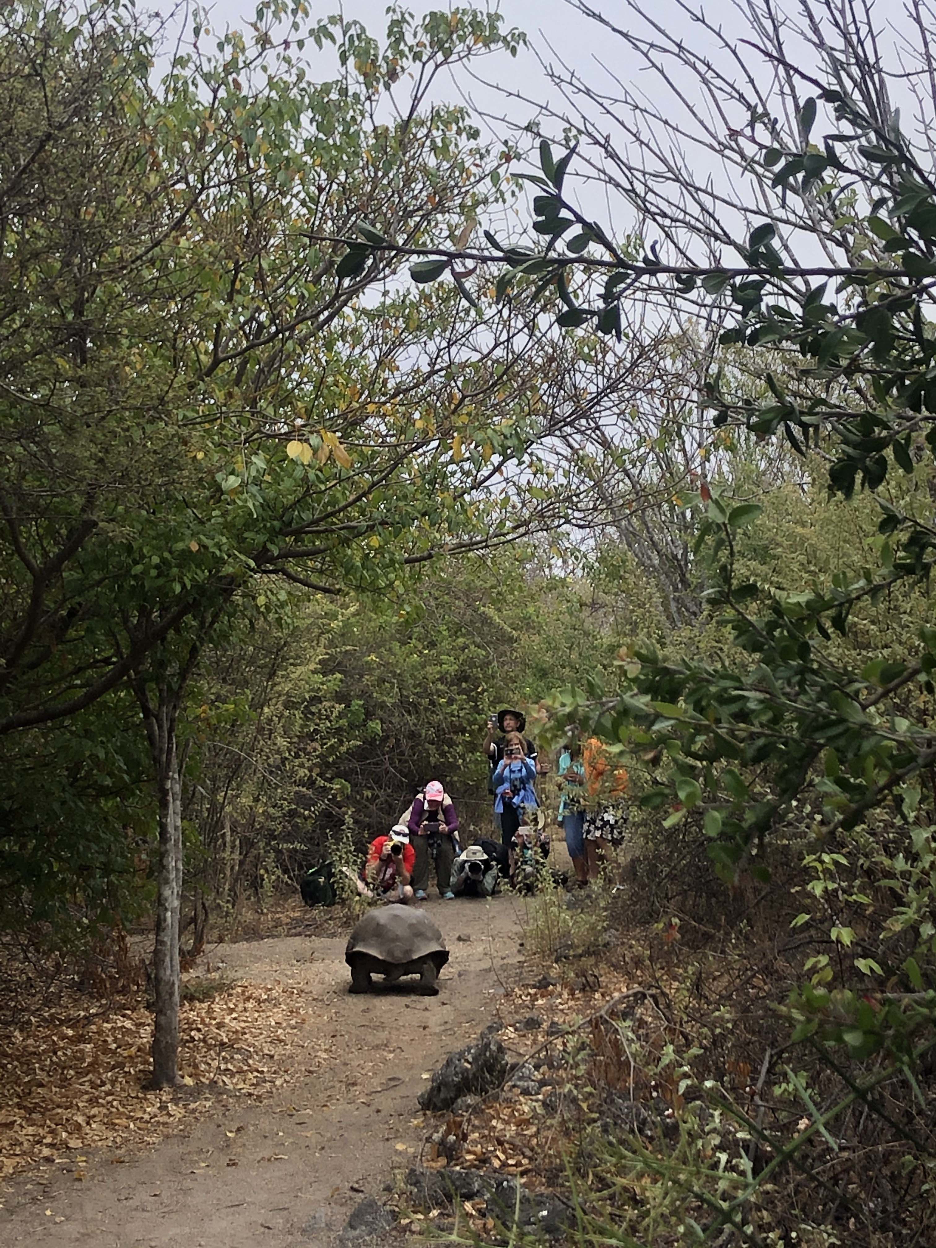 Today, National Geographic Endeavour II visited Cerro Dragon, located on the north part of Santa Cruz Island. We found one of the largest colonies of land iguanas. During our hike, we spotted the iguanas all around the trail. Some basked on the vegetation, and others were active. We saw the zigzag head movement they use to protect their territory and impress females. An Ecuadorian buffet lunch was set up in the dining room. We started with the traditional ceviche and ended with tres leches for dessert! We enjoyed snorkeling and Zodiac rides. We observed wildlife all over the place, including spotted eagle rays, sharks, blue-footed boobies, great blue herons, marine iguanas, and hundreds of other animals. They all reminded us why the Galapagos is so special.