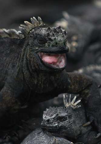After lunch, we had a dry landing on the youngest island in the archipelago. This is Fernandina, the most pristine of the enchanted islands. Once on the island, it feels like traveling back in time, to enjoy the Galapagos without much human impact. Our welcoming committee was hundreds of marine iguanas basking on top of each other, retaining body heat and digesting after sessions of diving into the ocean to scrape the green algae off the rocks in the shallow bottoms of the sea. Young sea lions were playing in the tide pools, and flightless cormorants were displaying their courtship and building nests on the dry shores on the smooth black lava fields. What an amazing day, visiting the two youngest islands of the Galapagos.