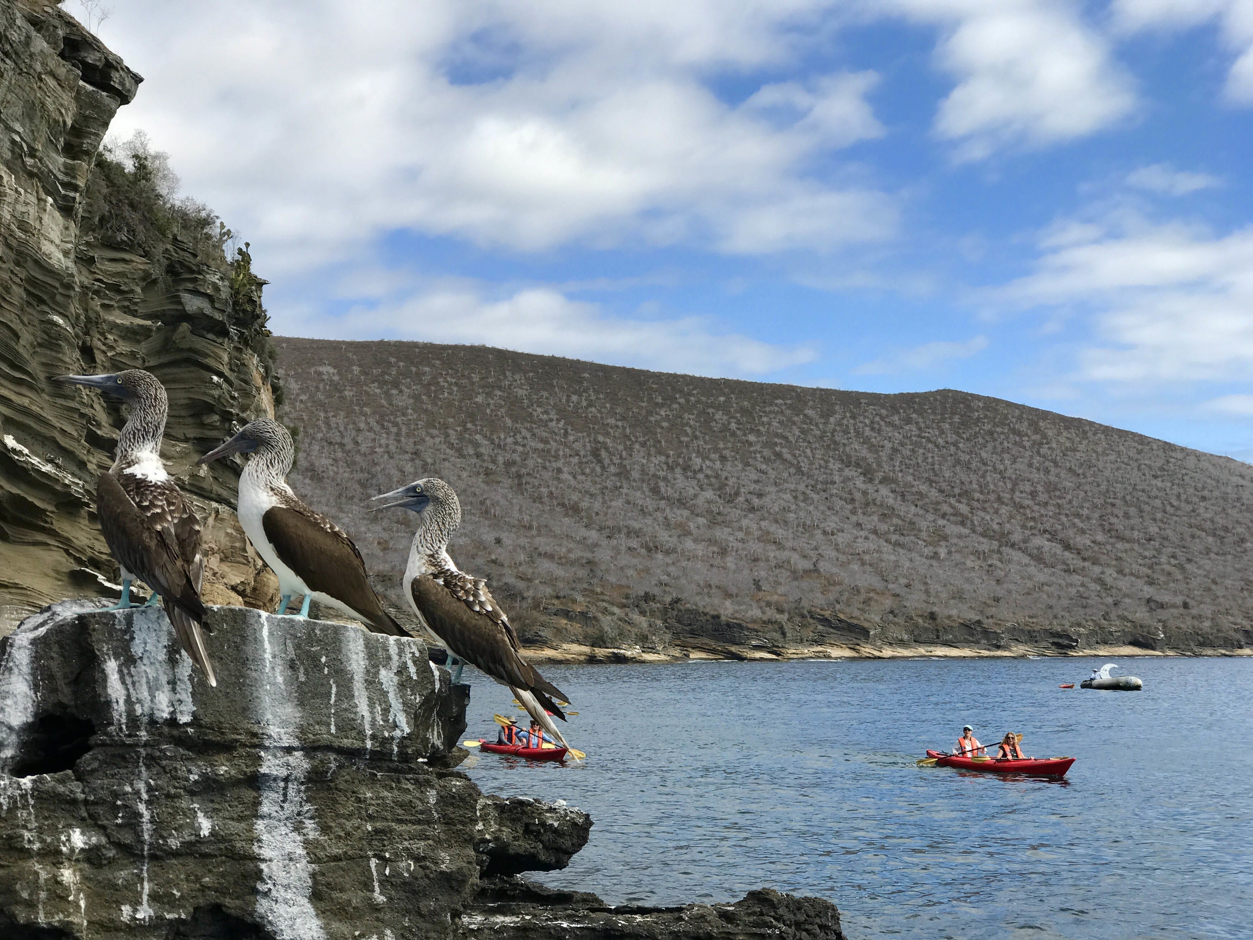 Today we spent the last day of our expedition at the island of Genovesa. It took us several hours of navigation to reach the island, which is located in the northern hemisphere and is home for more than a million birds! In the morning, we went out to explore Darwin Bay. We had an easy landing on a white sand beach covered by pieces of white coral. No matter where we looked, we spotted birds everywhere. Indeed, Genovesa Island holds the largest colony of red-footed boobies on Earth. More than 200,000 red-footed boobies are found here. These birds are so beautiful. They have a gorgeous blue beak with a pink mask and a black outline beneath their beaks. Red-footed boobies nest on bushes and trees. Their call is very distinctive and loud, and males and females are alike. During our easy stroll at Darwin’s Bay, our guests were lucky as they witnessed a swallow-tailed gull emerge from its shell. It was a miracle and a wonder of nature. I was fortunate to go kayaking with our guests inside of the protected caldera of Genovesa Island, and we enjoyed our last opportunity for deep water snorkeling. The waters are warmer here, and there are many colorful fish to observe. In the afternoon, we went to Prince Phillip’s Steps. After climbing the uneven steps, we reached the plateau and went to look for the elusive short-eared owl. We were very lucky, as we spotted two owls right by the trail. This is the best time of year for the owls. The storm petrels are nesting, and there is plenty of food for the owls. We went back onboard with feelings of amazement and gratitude. Galapagos is like the Garden of Eden. Humans encounter nature, and animals are not afraid of us. Those are the gifts that we keep for the rest of our lives!