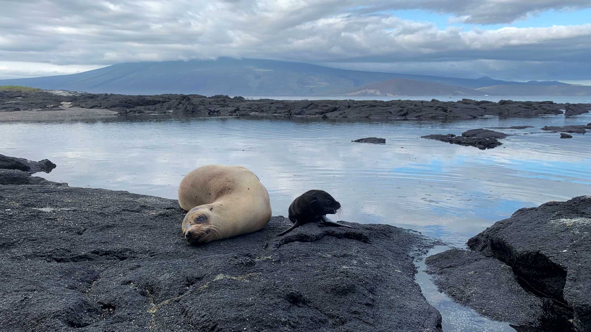 In the afternoon, we reached Fernandina Island, the youngest of all. Here we disembarked for an exploration walk. From the moment we landed until the end, we were surrounded by marine iguanas! This island happens to be a paradise for marine iguanas. But not only for these creatures! We also spotted red crabs decorating the black lava rocks. The best sightings were the newborn sea lions! This is the beginning of the breeding season. From now on, there will be baby sea lions all over the beaches of the Galapagos!