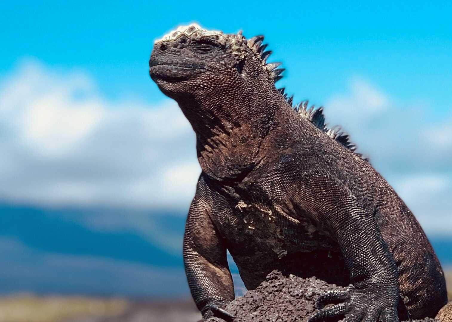 Today, National Geographic Endeavour II visited Cerro Dragon, located on the north part of Santa Cruz Island. We found one of the largest colonies of land iguanas. During our hike, we spotted the iguanas all around the trail. Some basked on the vegetation, and others were active. We saw the zigzag head movement they use to protect their territory and impress females. An Ecuadorian buffet lunch was set up in the dining room. We started with the traditional ceviche and ended with tres leches for dessert! We enjoyed snorkeling and Zodiac rides. We observed wildlife all over the place, including spotted eagle rays, sharks, blue-footed boobies, great blue herons, marine iguanas, and hundreds of other animals. They all reminded us why the Galapagos is so special.