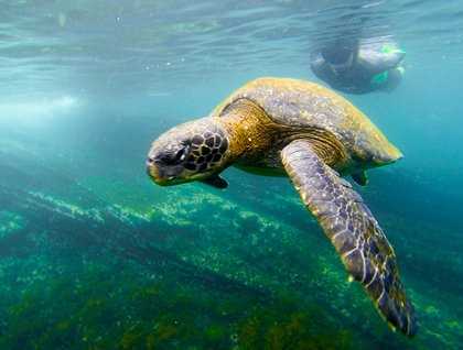 In the afternoon the National Geographic Endeavour lifted anchor to take us to our next destination, “Tagus Cove.” This historic bay of Tagus Cove was used a sheltered harbor for wayfarers over the centuries. Some interesting historic graffiti can be found near the landing, and many stories can be told of visitors to this protected cover. This area of Isabela is one of the places visited by Charles Darwin in 1835. The afternoon visit included different options such as deep-water snorkeling, kayaking, and Zodiac riding along the fascinating eroded coastline of Isabela. On each of the options we found Galápagos penguins, flightless cormorants, and other surprises that we didn’t expected during snorkeling such as sea horses and horn sharks. The strenuous but scenic hike up the rim of a tuff cone overlooking Darwin Lake and beyond was rewarded as well.