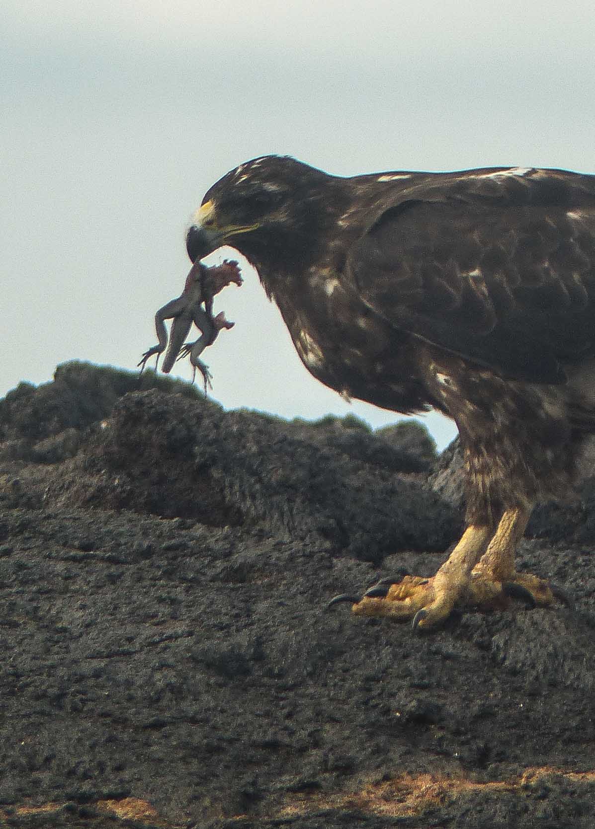 Today, National Geographic Endeavour II visited Cerro Dragon, located on the north part of Santa Cruz Island. We found one of the largest colonies of land iguanas. During our hike, we spotted the iguanas all around the trail. Some basked on the vegetation, and others were active. We saw the zigzag head movement they use to protect their territory and impress females. An Ecuadorian buffet lunch was set up in the dining room. We started with the traditional ceviche and ended with tres leches for dessert! We enjoyed snorkeling and Zodiac rides. We observed wildlife all over the place, including spotted eagle rays, sharks, blue-footed boobies, great blue herons, marine iguanas, and hundreds of other animals. They all reminded us why the Galapagos is so special.