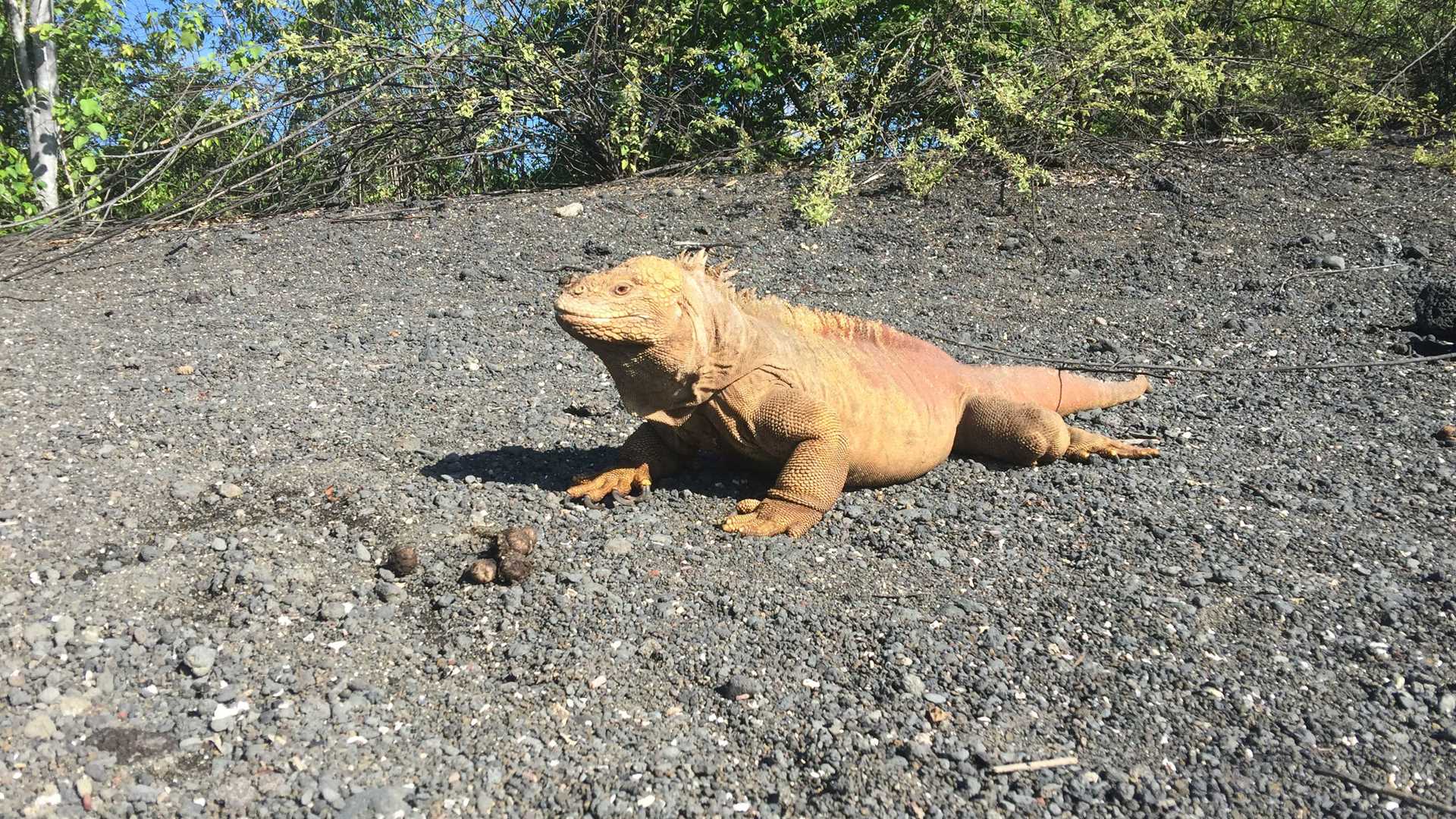 Today we walked on an uplifted area called Urbina Bay that was rose in 1954, at once leaving fish and lobster stranded. As evidence of this event one can see giant brain coral and eroded pebbles where the shoreline was. We saw giant tortoises, land iguanas basking in the sunlight, a feral cat, a couple of large marine iguanas, along with several finches. In the afternoon we visited Tagus Cove where the guests were able to kayak, snorkel, ride along the shoreline in the Zodiacs and hike up Darwin’s Volcano.