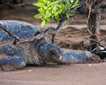 We left our peaceful anchorage off Fernandina at 0500 and navigated east to anchor just before breakfast in Urbina Bay at the base of Volcan Alcedo. This area was uplifted dramatically in either 1953 or 1954 and on our morning hikes we could still see evidence that the ocean once covered the trails where we walked. There were encrustations of tube worms and several large coral heads, all high and dry and slowly disintegrating. What we enjoyed most however this morning were nearly a dozen giant tortoises of all sizes that we were surprised and delighted to find lumbering slowly along the sandy paths among the lush vegetation behind the landing beach. It had apparently rained hard the day before and all the terrestrial critters were on the move! Land iguanas were mating, yellow warblers, finches and mocking birds were singing and the tortoises were on their way somewhere - busily walking, to where? – we did not know!