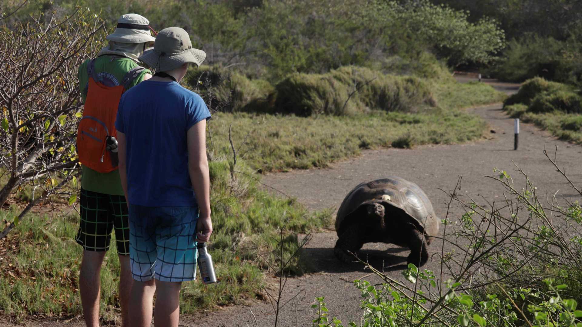 After stretching and breakfast, we disembarked at Urbina Bay. This was the beginning of a very exciting morning. While hiking at Urbina bay our guests had their very first encounter with giant tortoises; it was definitely a magical moment they will remember forever. The morning continued with Zodiac driving lessons for our young global explorers and a chance to jump off the ship for kids, and kids at heart! It was an exciting and adventurous morning.