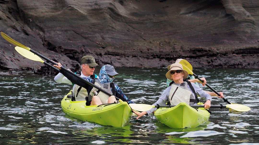 We woke up early in the morning as National Geographic Islander navigated along the northern part of Isabela Island. Slowly the sun appeared above the clouds surrounding Volcano Wolf. We spotted our first birds as Galapagos fur seals returned to shore from their night hunt. We enjoyed a great breakfast. Afterward, expedition leader Vanessa called everyone to the bow to celebrate as we crossed the equator. Our guests happily crossed the line. Approaching Punta Vicente Roca, the visitor site, we spotted Galapagos sea lions and a good number of ocean sunfish. The first activity of the day took place as we dropped anchor at Punta Vicente Roca. This is a spectacular geological site. The combination of the former volcano’s tall cliffs and the tuff cones formed later adds an amazing contrast to this unique visitor site. Our best tools for exploration, our Zodiacs, were lowered down, and off we went to explore the coast. We observed Nazca boobies and blue-footed boobies resting on the small ledges of the tuff cones. Galapagos sea lions swam close to our Zodiac, and Galapagos penguins rested on a broken piece of the tuff cone after feeding. What a wonderful sight! In a calm area, we found a good number of Pacific green sea turtles. The morning’s activities ended with snorkeling. Pacific green sea turtles, plenty of colorful fish, Galapagos marine iguanas and flightless cormorants surrounded us. It was a phenomenal experience! The ship was repositioned toward Fernandina Island. The youngest island of the archipelago, Fernandina is a highlight of our expedition. This island shows our guests the beginning of life. We observed animals thriving in the hostile environment. Pioneer plants like lava cacti grow on the lava fields, breaking down rocks little by little to create soil for the next generation of plants. Punta Espinoza is known for its huge colony of Galapagos marine iguanas. It is hard to distinguish the iguanas from rocks since they are so dark in color. On the other hand, colorful Sally Lightfoot crabs added contrast to the young, dark lava fields. We ended our walk as the sun was setting, returning to the ship with great memories. It was a fantastic day in the western part of the archipelago.