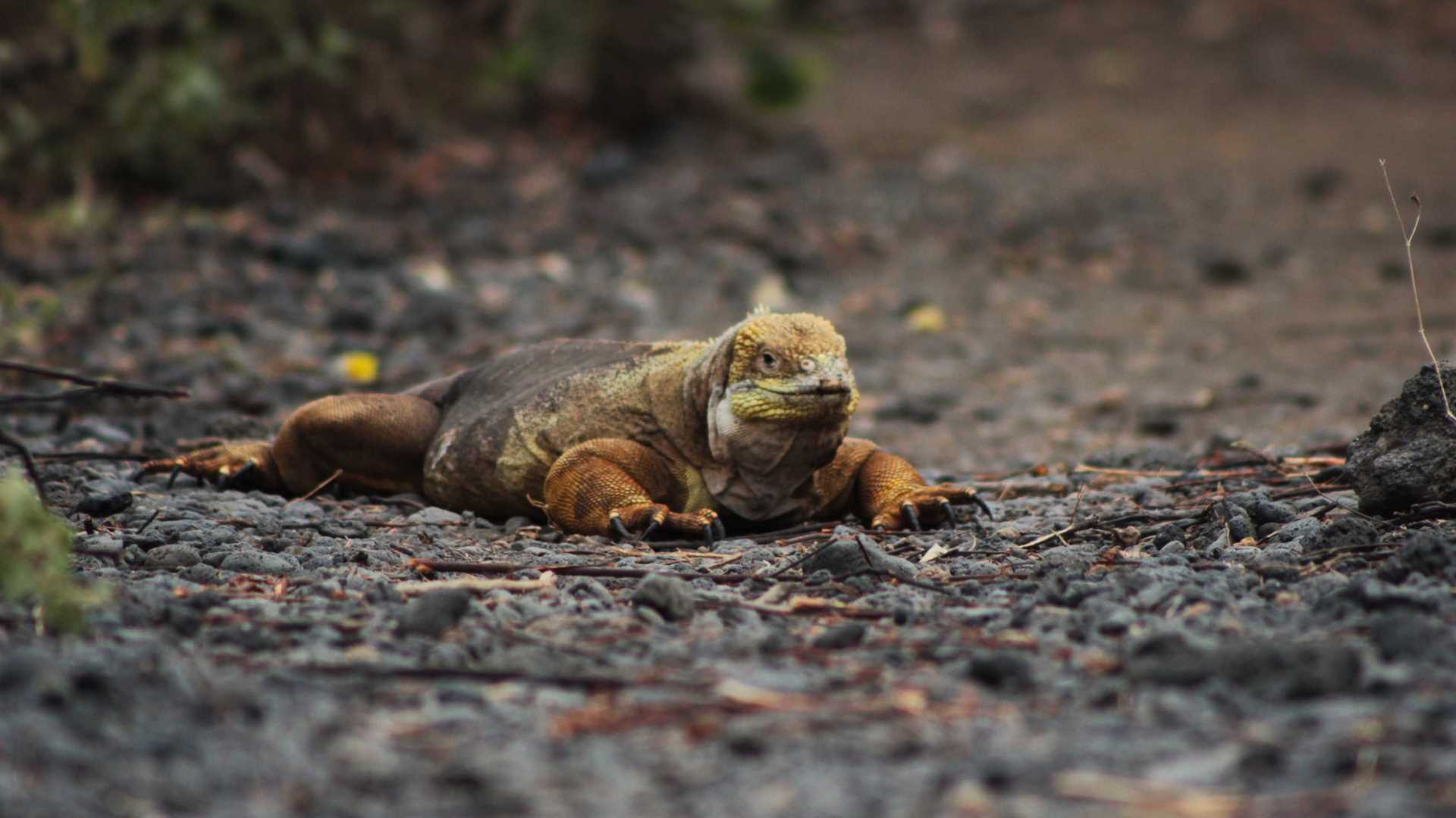 Sunrise was a bit overcast, and the wind of the dry season made small waves that gave the first morning impression of the isolation and wildness of western Galapagos. We landed on Urbina Bay first thing in the morning, in the search of the Galapagos land iguanas. As soon as we started our hike inland from the black sand beach we found a giant Alcedo tortoise. It came out from the bush in the middle of the trail. It was feeding from the poison apple tree because it is one of the very few animals that can eat this plant. On this walk, we also found a male land iguana that was setting his territory boundaries by walking from one side to another around a big nest. Many other land iguanas showed up as we kept walking into the forest. The morning ended with a refreshing swim off the beach, surrounded by turtles and flightless cormorants.