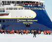 We woke up early in the morning as National Geographic Islander navigated along the northern part of Isabela Island. Slowly the sun appeared above the clouds surrounding Volcano Wolf. We spotted our first birds as Galapagos fur seals returned to shore from their night hunt. We enjoyed a great breakfast. Afterward, expedition leader Vanessa called everyone to the bow to celebrate as we crossed the equator. Our guests happily crossed the line. Approaching Punta Vicente Roca, the visitor site, we spotted Galapagos sea lions and a good number of ocean sunfish. The first activity of the day took place as we dropped anchor at Punta Vicente Roca. This is a spectacular geological site. The combination of the former volcano’s tall cliffs and the tuff cones formed later adds an amazing contrast to this unique visitor site. Our best tools for exploration, our Zodiacs, were lowered down, and off we went to explore the coast. We observed Nazca boobies and blue-footed boobies resting on the small ledges of the tuff cones. Galapagos sea lions swam close to our Zodiac, and Galapagos penguins rested on a broken piece of the tuff cone after feeding. What a wonderful sight! In a calm area, we found a good number of Pacific green sea turtles. The morning’s activities ended with snorkeling. Pacific green sea turtles, plenty of colorful fish, Galapagos marine iguanas and flightless cormorants surrounded us. It was a phenomenal experience! The ship was repositioned toward Fernandina Island. The youngest island of the archipelago, Fernandina is a highlight of our expedition. This island shows our guests the beginning of life. We observed animals thriving in the hostile environment. Pioneer plants like lava cacti grow on the lava fields, breaking down rocks little by little to create soil for the next generation of plants. Punta Espinoza is known for its huge colony of Galapagos marine iguanas. It is hard to distinguish the iguanas from rocks since they are so dark in color. On the other hand, colorful Sally Lightfoot crabs added contrast to the young, dark lava fields. We ended our walk as the sun was setting, returning to the ship with great memories. It was a fantastic day in the western part of the archipelago.