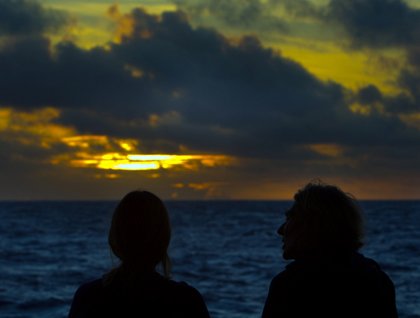 Underwater, penguins whizzed by and a couple of Galapagos sea lions danced with us for a brief moment before dashing on. The serene marine turtles captured our hearts once more as they grazed the flowing seaweed; kayakers saw plenty of cormorants on shore, as colonies have appeared in the area, and at least so far, are doing well. The hikers worked hard to reach the lookout point above Tagus Cove, and in the lowering sun through a partly cloudy sky, saw a view that pirates, whalers and adventurers have also seen over the centuries.