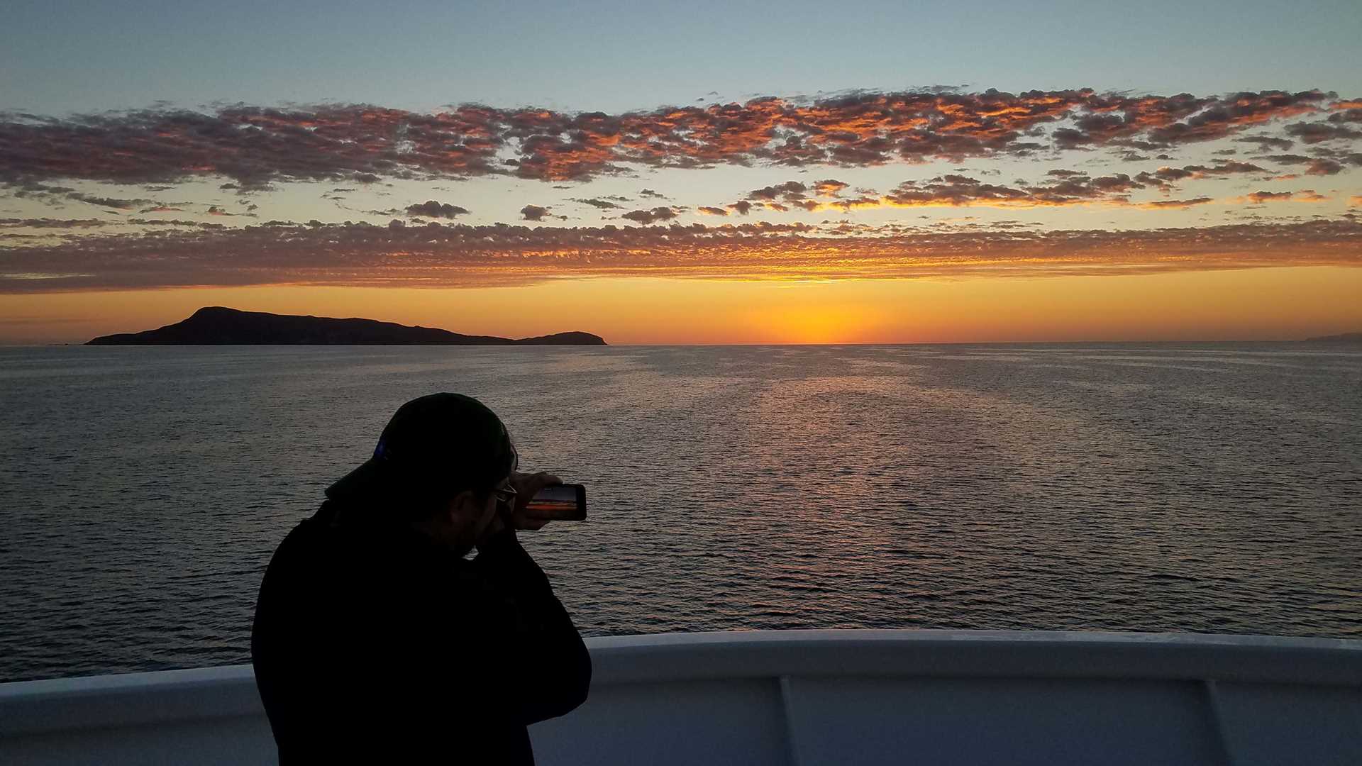 It was the last day of the trip, and National Geographic Venture began the day with an Exhale-led stretch class on the aft deck and a stunning sunrise off the bow. The ship anchored at Isla San Franciscito and everyone headed to shore for a day of adventure. The shore activities started with hikes and tide pooling. Later on, the kayaks and stand up paddle-boards were unloaded, giving us all the chance to play in the water. After lunch snorkeling was a big hit and the day ended as it began, with Exhale-led yoga and a beautiful sunset.