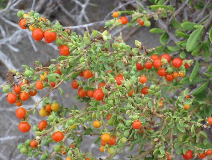 Some of us preferred to walk on our own, along a long, long beach, loaded with seashells and other tidbits of biological origin. And we even saw a few bushes of the plant known as wolfberry or boxbush, incredibly loaded with thousands of delicious small red fruit-like tomatoes, the plant being in the same family as the potato.