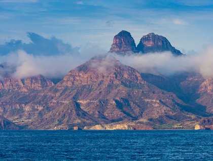 Today a rare event happened in Baja California – it rained. The early risers among us are greeted by lightning, thunder, and a heavy downpour. The storm cleared just in time for sunrise, with clouds clinging to the jagged peaks of the Sierra de la Giganta along the mountainous spine of the Baja Peninsula. But the morning didn’t clear soon enough for us not to change our plans. So instead of anchoring along Isla Danzante in the morning, we continued south toward the blue sky. Along the way, dolphins escorted from time to time.