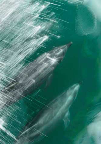 The morning began with a bang – literally! Thunder rumbled in the distance and lightning forked to the water from angry storm clouds. Distant rain stretched from cloud to sea as the sun peeked over the horizon, lighting up the cliffs of Isla San Pedro Martir. A couple rounds of Zodiacs zipped out to explore. Some boats circumnavigated the island, searching for elusive Guadalupe fur seals amongst the barking California sea lions. The island was an oasis for bird activity. The air was filled with brown and blue-footed boobies, pelicans, cormorants, and the exceptionally beautiful red-billed tropicbird. Photographers went nuts shooting the birds in flight, their elegant long tail feathers wisping in the wind behind them. Some boats headed out to sea in pursuit of bottle-nose dolphins, running with the dolphins as they leapt playfully alongside the Zodiacs. Photographers were spread-eagled on the pontoons, cameras snapping frantically as dolphins leapt and arched through the water.