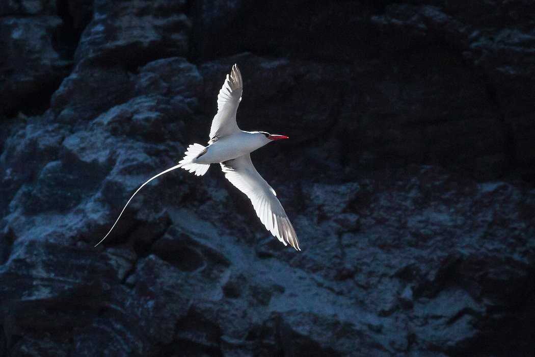 This morning we explored the rocky shores of the remote island on San Pedro Mártir from our fleet of inflatable boats. Brown boobies and blue-footed boobies crisscrossed the air above us. Brown pelicans rested stately on the shoreline rocks, meticulously preening their feathers. Red-billed tropicbirds flew overhead occasionally, calling exuberantly with shrill voices as they swooped close to the rocky cliffs. The most amusing creatures we found were exuberant throngs of young California sea lions jumping, playing, and curiously peering at us from the sparkling waters around our boats.