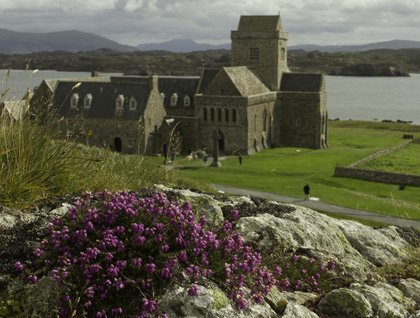 Our expedition through the highlands and islands of Scotland may have found its apotheosis, its fullest and most complete expression, as we traveled today across the beautiful landscape of Mull and rode the ferry to the sacred island of Iona. Literally, “apotheosis” translates from Greek as “from God” – and in modern usage it carries the meaning of reaching a pinnacle of an experience or a process. It seems a perfect term for our journey through the glorious steep-shouldered hills and deep valleys of the Ross of Mull, on our way to the tiny island where St. Columba established the first important center of the Christian Church in the British Isles.