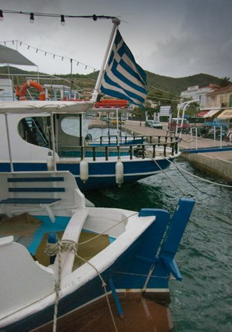 We waited for guests to disembark next to the statue of Odysseus (Ulysses in Latin), since Ithaki was his kingdom according to Homer. Incidentally, our travel agent on the island is called Homer Travel, my taxi driver is Laertes, and his dad is Odysseus, all of which I consider very appropriate.