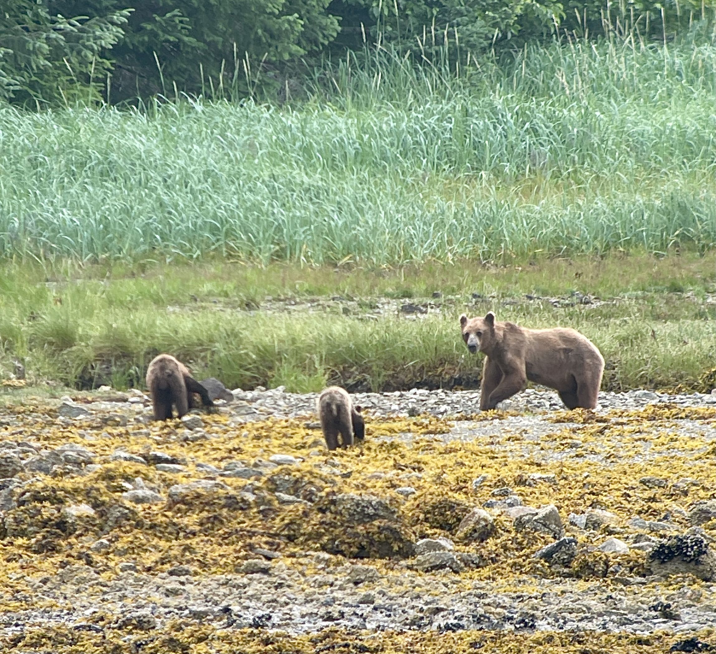 This morning we awoke in Iyoukeen Cove, the glassy water of the Inside Passage reflecting the silver of the low clouds. After breakfast, we transferred to the sandy beach to venture out on kayaks and into the dense Tongass rainforest. Coral root orchids, bear bread fungus, and Devil’s club dotted the forest. We listened to the ancient rainforest with only birdsong breaking the quiet. Kayakers and stand up paddleboarders paddled along the quiet beach and calm waters of the cove. We made trumpets from bull kelp pneumatocyst floats and filled the air with bugles.