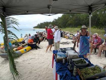 The snorkelers were awed by the profusion of colorful fish and many people took the opportunity to explore the coral reefs that were accessible from the shoreline. Nearby, kayakers plied the tranquil waters, absorbing the tropical scene and moving at their own pace. But no matter which morning activity was chosen, we all met again further down the beach for a splendid barbeque lunch. The Hotel Department had set up a spread that added a spectacular setting to their usual delicious standards.