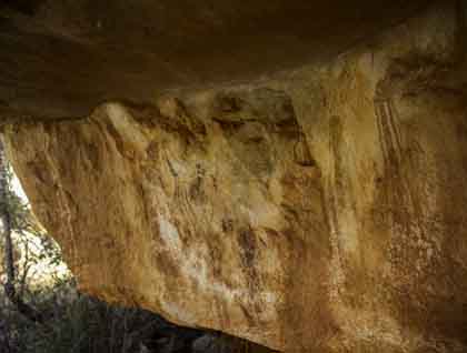 Our morning explorations took us to Jar Island to visit several wonderful galleries of the style of rock art called Bradshaw or Gwion Gwion. We hiked a short distance inland on an easy trail and then threaded our way among sets of huge boulders, clambering over smaller rocks and roots to arrive at shady openings where ancient figures of men and animals surrounded us. Gwion Gwion art evolved considerably over the long period during which it was created and we saw many beautiful examples of several different styles, including the oldest “tassled” figures, the “clothes-peg” figures – named for the resemblance of the body forms to old wooden clothes pegs – and more recent illustrations of fish, crabs, echidnas and other animals that are perhaps best described as menus. Cristiana, Mark and Brent described their forms to us, pointing out many that were hidden in the shadows or under overhanging rocks and encouraging us to speculate on their significance. No one today fully understands Gwion Gwion art, but we felt a strong connection to the lives of the people who lived here and touched these very boulders so long ago, leaving beautiful and mysterious stories for us to contemplate.