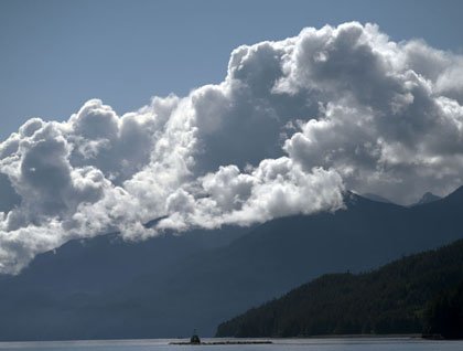 A gorgeous sunrise found the National Geographic Sea Lion cruising in the northern end of Johnstone Strait, a main channel running through the Inside Passage. To the east the sun was decorating the mainland of British Columbia with mysterious shadows, while to the west the inside coast of Vancouver Island was illuminated by early morning light. There were staff on the bow on whale watch while many of us relaxed and enjoyed another day of light breezes and sunshine as we continued our journey north. In the late morning, Sharon Grainger gave a presentation on the people, culture and art of the Northwest Coast. From her perspective we got a glimpse of life along this nutrient rich coastline. Through images we saw the furtive and dramatic landscape of the Northwest Coast where there is a strong connection between the land, art and tools, all of which provide the perfect materials and backdrop for the foundation of a complex culture and art form. This is expressed in paintings, carvings, weavings, making of button blankets and the building of Big Houses. In the Big Houses stories are told about the first encounters each family member had with the first natural and super natural beings...those creatures who shape shift and move either in shadow, fly overhead and swim in the sea. These stories are depicted in crests owned and passed on by families which remind each family member, clan and group of who they are and where they come from.
