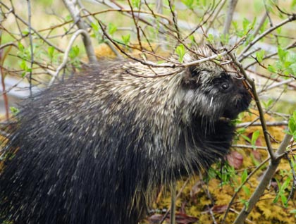 The new trail to Nugget Falls near Mendenhall Glacier offered a perfect hike through young successional forest. Willows and Sitka alders unfurled their leaves and catkins almost as we watched, and droplets of water on lupine leaf and pussy willow gave photographers additional reflections. In the past week the volume of water in Nugget Falls has doubled as the spring snowmelt gets underway, so the roaring of the cascading water was especially impressive.