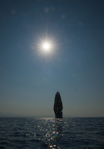 Today we had a beautiful morning at sea. After breakfast we set sail towards Katakolon. Without very much wind we set all the square sails to catch every available breath of wind. There was enough wind to fill the sails, but still keep the seas calm, so during breakfast we put down the Zodiacs and most of us went out for a unique and exciting circumnavigation of Sea Cloud under sail. Back on board, our guides Effie and Stella gave us a talk on Greek Religion and Culture. By noon we arrived at the small port of Katakolon on the west side of the Peloponnese; a small but busy port.