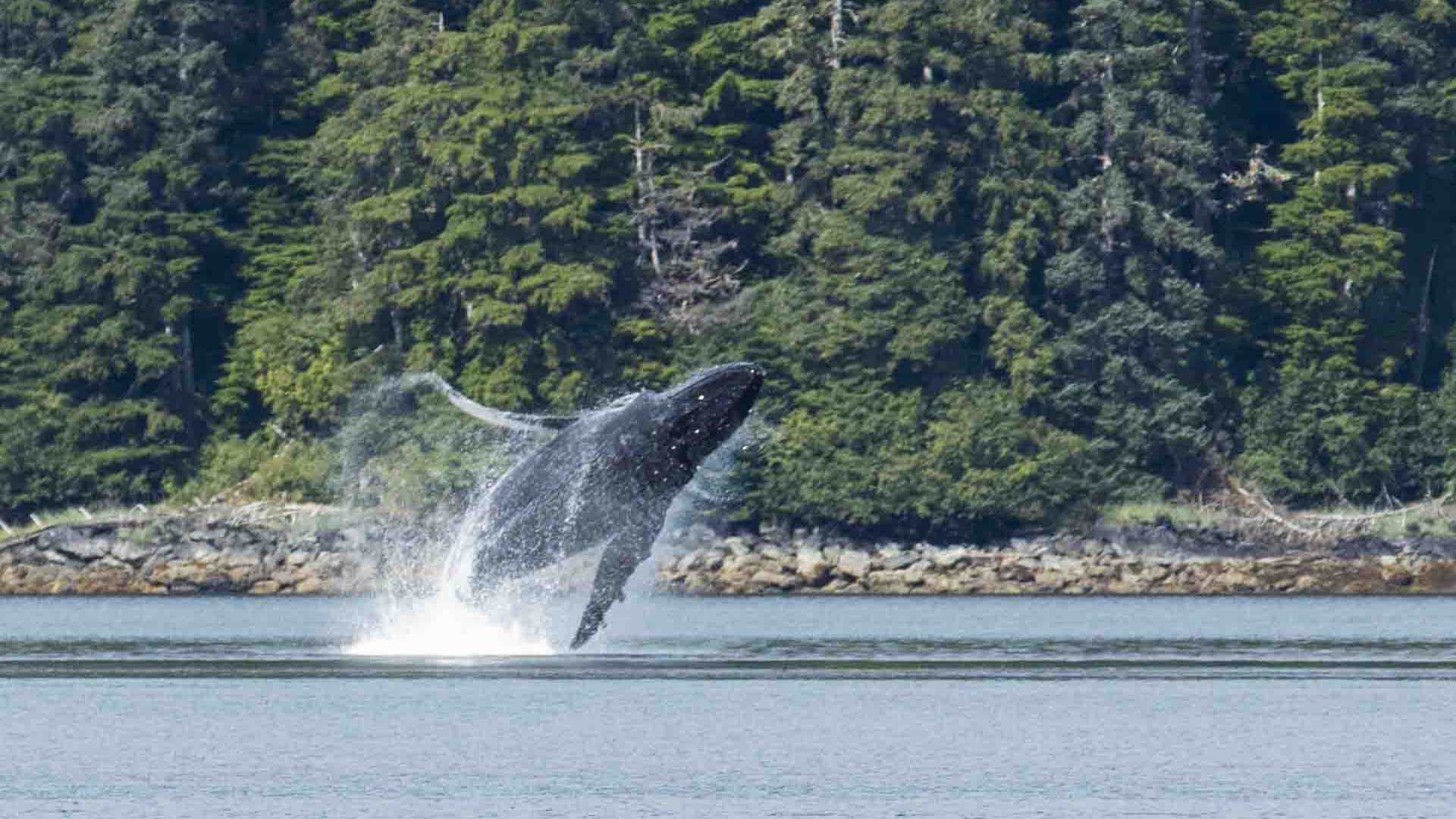 After cruising through the night, National Geographic Sea Lion explorers awoke in the calm waters of beautiful Kelp Bay. Several guest explorers bushwhacked through the Alaskan blueberry, huckleberry and Sitka alder to explore an old growth forest dotted with 200-300 year old Sitka spruce and western hemlocks. Sphagnum moss blanketed the spongy ground with numerous species of mushrooms passively turning the dead forest into the nutrients needed to support the emerging seedlings of a diverse understory. With great effort guest explorers slogged their way to interior wetlands and muskegs to witness the plant diversity of one of Alaska’s most common biomes. Meanwhile, other explorers ventured out in kayaks to watch sea otters and harbor seals rollick about Kelp Bay. Once the early morning explorers traded places with the early kayakers, and all seemed to be enjoying pleasant walks and paddles when suddenly a loud noise rang out—or did it? Those in kayaks were pleasantly surprised to see a humpback whale completely breach and then slam the water with percussive force. Hikers were baffled by the “bang”; however, all quickly preceded to the intertidal zone to witness either the 2nd or 3rd humpback breach. Expedition landing craft riders were fortunate to trail the humpback from the 100 yard distance mandated by the Marine Mammal Protection Act (MMPA). This humpback continued to slap the water with its fins, perhaps playing, perhaps jarring krill that it then captured while feeding.