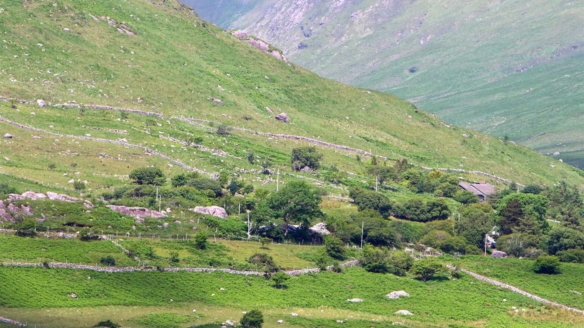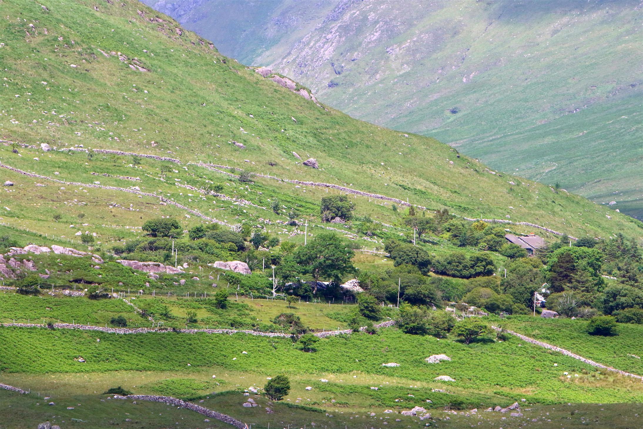 A watershed in the history of the island of Ireland and its people was the Great Famine of 1845-49, caused by the failure of the potato crop, on which some 5.5 million people at the time were totally dependent. Between those years it is estimated that 1 million people died with a further 1 million emigrating, many to North America. Abandoned, tumbled down stone- walled cottages pepper the landscape, as do the long soil ridges known as lazy-beds on which the potatoes were grown, stark and sad reminders of this tragic event.