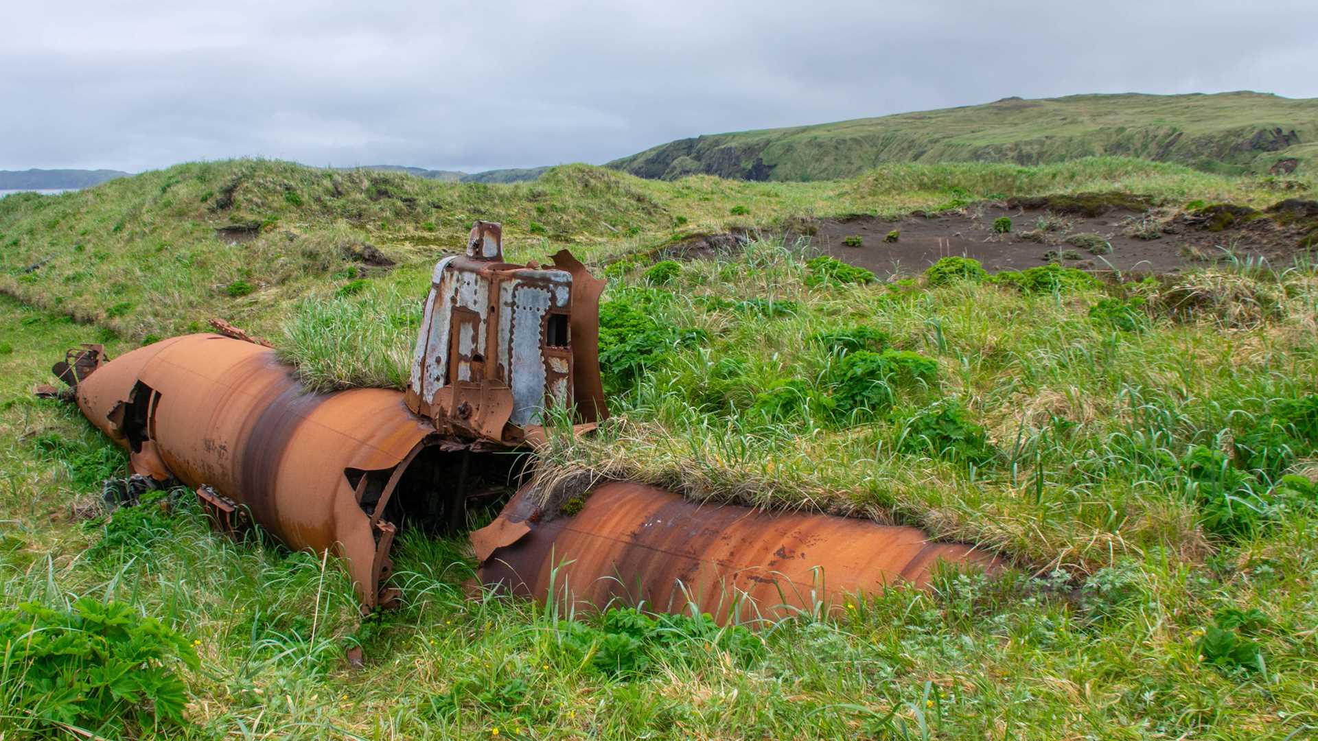 The fog was drifting through the hills as National Geographic Orion slipped into Kiska Harbor early in the morning. This historical island was once home to the largest occupying enemy force on United States ground in North America during the Second World War. Kiska Island held a garrison of just under 8,000 Japanese soldiers at its peak. For just over one year the Japanese occupied Kiska until on August 15th, 1943, 34,400 American and Canadian troops stormed the beaches of Kiska to take it back. To their surprise the 5,300 Japanese troops that were still on the island just a few weeks before had vanished, carried away by the Japanese Navy under the cover of fog.