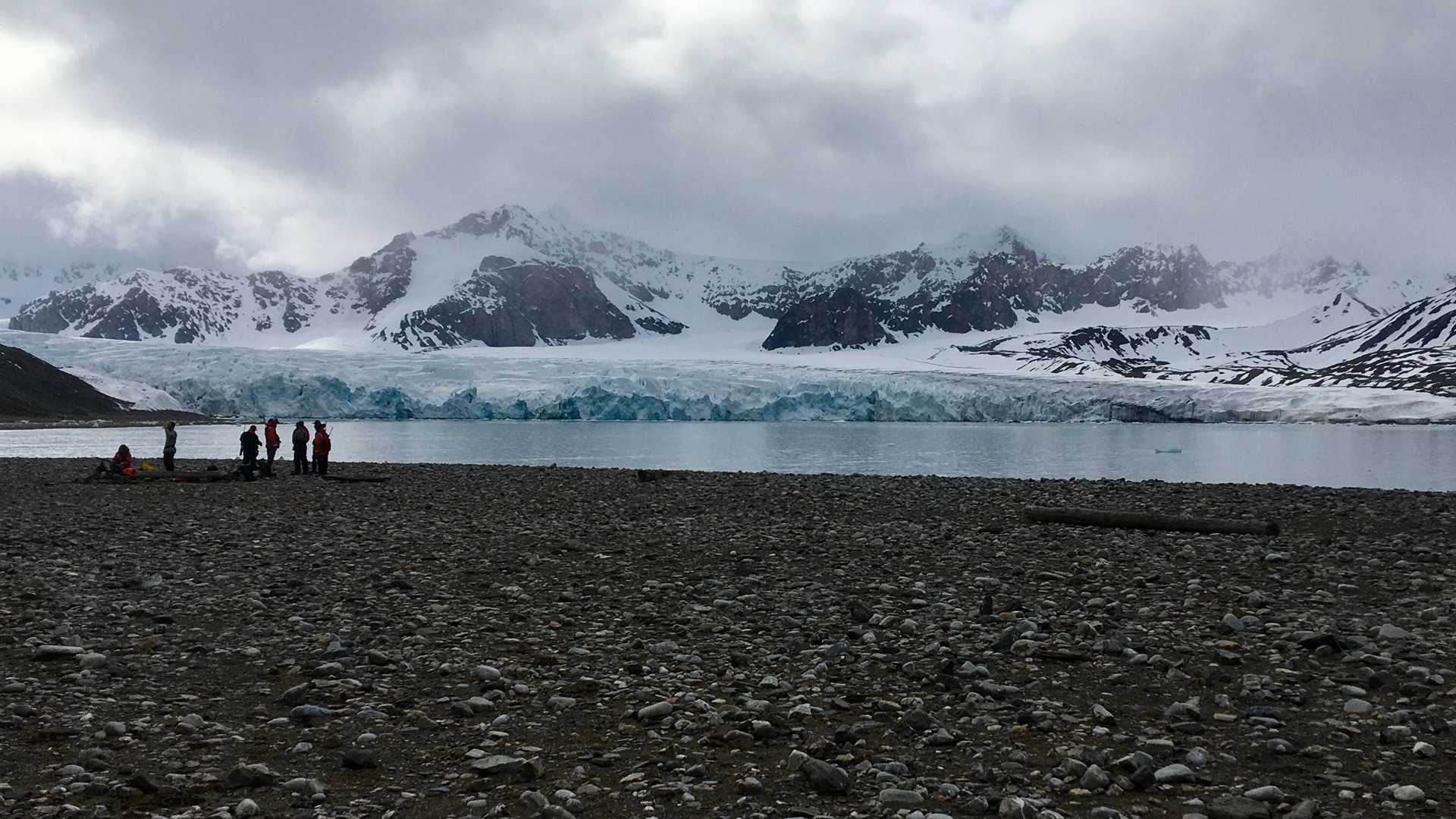 Early this morning we entered Krossfjorden on the northwest side of Spitsbergen Island. The sky was gray, but the scenery was spectacular. The cliffs that surround the fjord had a sprinkling of fresh snow from last night and the air temperature was also relatively mild, an almost balmy 35°F!