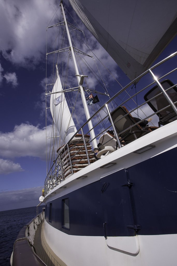 Meanwhile, others strolled about La Paz. Some of us visited the whale museum, and walked up to the city cathedral. Later in the afternoon, we motored north. Though there were some really interesting and fun programs going on in the lounge, the beautiful scenery from the bow was ever beckoning. The salmon-colored cliffs of Isla Espiritu Santa shone ever rosier as the sun sank over the Sierra de la Giganta.