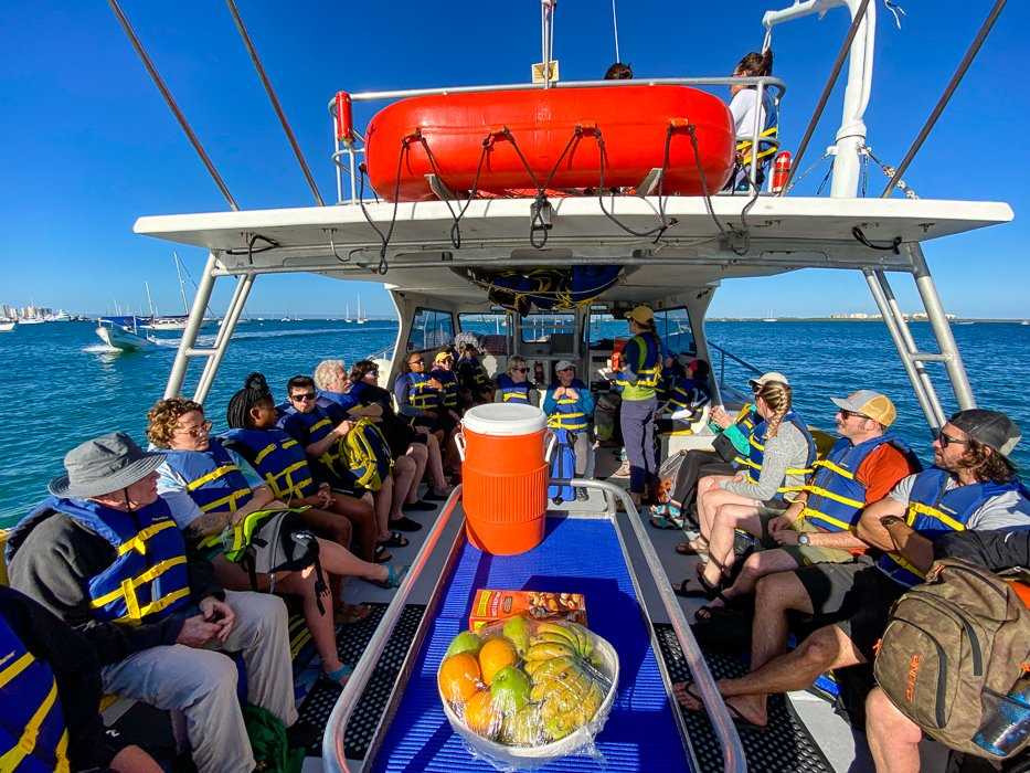Today was the first day of our expedition. With the help of one of our favorite local La Paz vendors, we had an incredible experience here in the Sea of Cortez. We joined FunBaja on two of their vessels and went to a sea lion rookery to go snorkeling for the first time! Along the way, we stopped at a tiny island inhabited entirely of sea birds. After our adventure with FunBaja, we boarded National Geographic Venture and set sail to watch for marine life as we head to our next destination, eager to see what is in store for us tomorrow.