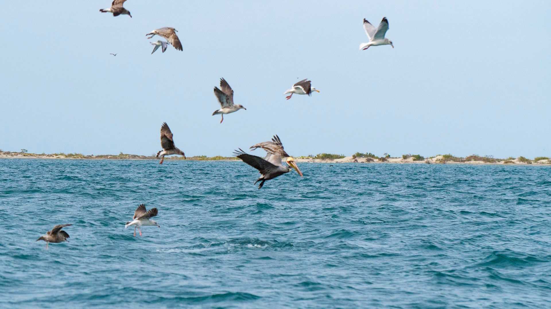 To best view the wildlife up close, we were transported around the lagoon by local guides in pangas after a long and bumpy Zodiac ride to the beach. Inside the lagoon, a few wind-blown whitecaps danced over the water. A number of gray whale calves were seen near our pangas. When the whales finished feeding, there was time to see the rich variety of birds surrounding us.
