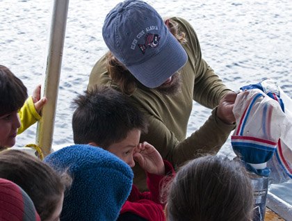 The afternoon was consumed with exploring along a beautifully clear salmon stream lined with old-growth Sitka spruce, western hemlock, and alders. This waterway flows from Lake Eva, and today was filled with hundreds of pink salmon and a few sockeyes. Most of our hikers gazed into a pool with a bottom that was black with salmon. They were waiting for their bodies to change into the superb egg-laying machines they are noted for.
