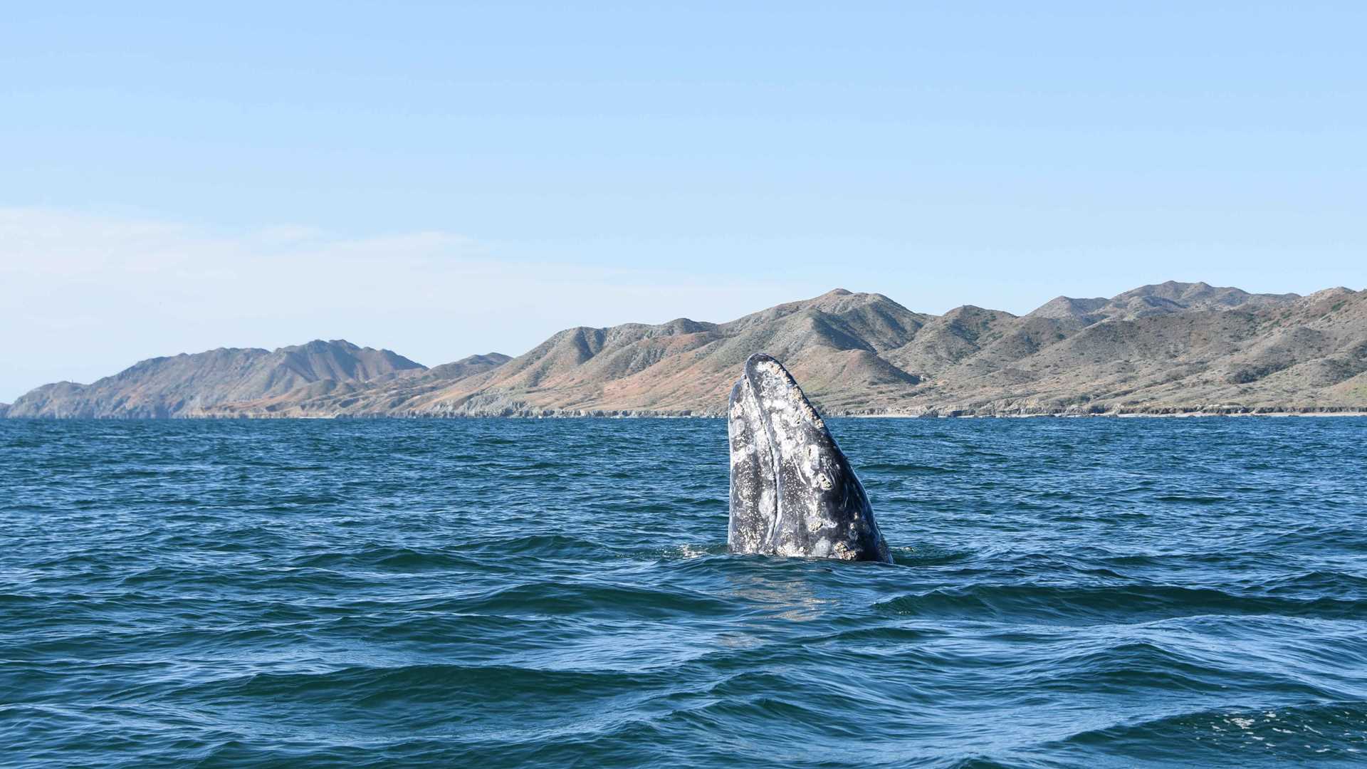 What a fantastic day at Las Almejas this morning, gorgeous sunny skies, flat calm waters and gray whales in every direction! Having sailed all through the night, we woke to waiting pangas to take us into the breeding lagoon. Gray whales travel all the way down from the high arctic of Russia and Alaska to the warm and protected waters of Baja California Sur and we were fortunate enough to see many of them today. The afternoon was spent nearby at Isla Santa Margarita enjoying hikes up the mountain and along the beach, while others kayaked and tested their balance skills on stand-up paddleboards. All in all, we couldn’t have asked for a better last day in Baja as we enjoyed our wonderful photo slide show, great company and a stunning sunset.