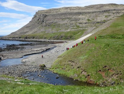 It feels strange to arrive in Iceland from the north and experience the island for its southern qualities; yet this is what we have done. The cold Greenland Current has given way to the North Atlantic Drift: snow and ice to early summer sunshine. Yesterday’s heavy rain passed through to leave the bright blue skies and lenticular clouds. This has been a true expedition, with the expedition leader and the captain on the bridge early morning optimizing our daily schedule. This morning, after cruising beside the spectacular bird cliffs at Latrabjarg before breakfast, we chose to make an expedition stop at Brekkuhlid in Breidafjord. A series of walks were offered in a pristine landscape with the remains of a former farmstead set amongst an abundance of spring flowers, including mountain aven, the Icelandic poppy, and wild thyme in abundance.