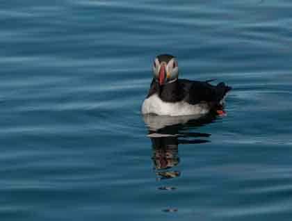 We awoke to a misty, moist first morning as we made our approach to the spectacular Latrabjarg cliffs of Iceland’s rugged northwestern shores. These ledged cliffs are perfectly formed to house a major colony of razorbills and other members of the auk family, including Atlantic puffin and black guillemot. Rich feeding grounds were much in evidence with balls of mackerel at every turn and, in spite of the misty conditions, there were good bird sightings including red-necked phalarope in addition to numerous fulmar and kittiwake.