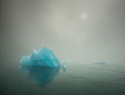 “Ephemeral.” “Moody.” “Mysterious.” “Majestic.” These are all words used to describe the atmosphere created by the heavy band of fog we awoke to this morning. Cut loose near the entrance to Le Conte Bay, four GPS-aided boats slipped out of sight, bound for an unseen destination. Two miles to the east a shallow bar of silt and rock supposedly ensnares large icebergs as they drift from North America’s southernmost tidewater glacier, Le Conte. For two obscured miles it was hard to imagine anything else existing but our small inflatables as we sliced through this featureless, yet eerily calm environment. Gradually, as if only an apparition, muted forms began to take shape through the mist, their amorphous outlines turning to opaque sculptures of ice, perfectly mirrored on the water’s surface. Sure enough, the deeply keeled icebergs, born of the Le Conte glacier, had drifted to the end of the fjord and gotten hung up in the shallows, destined to spend the rest of their lives as sentinels to their source of origin, five sinuous miles further south and east.