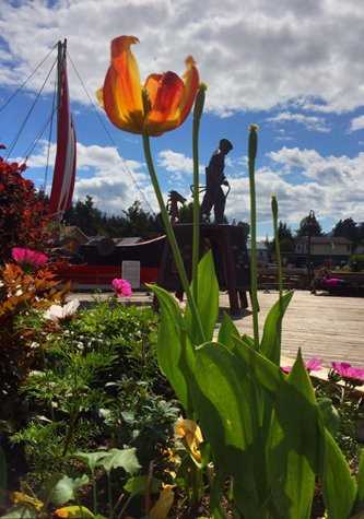 Just north of Le Conte Bay on Mitkof Island is the fishing community of Petersburg. We had an incredible day exploring Petersburg, our preparations started with a liberal application of sunscreen. Blue skies, blazing sunshine, and billowy clouds were the backdrop to our activities. The chirpy chicken calls of eagles, the sweet spiraling song of thrushes, and the staccato repeats of the chicka-dee-dee-dee all provided a symphonic backdrop from town to the shaded forest. Bicycles were also available for a wind-whipping-through-your-hair ride around the town.