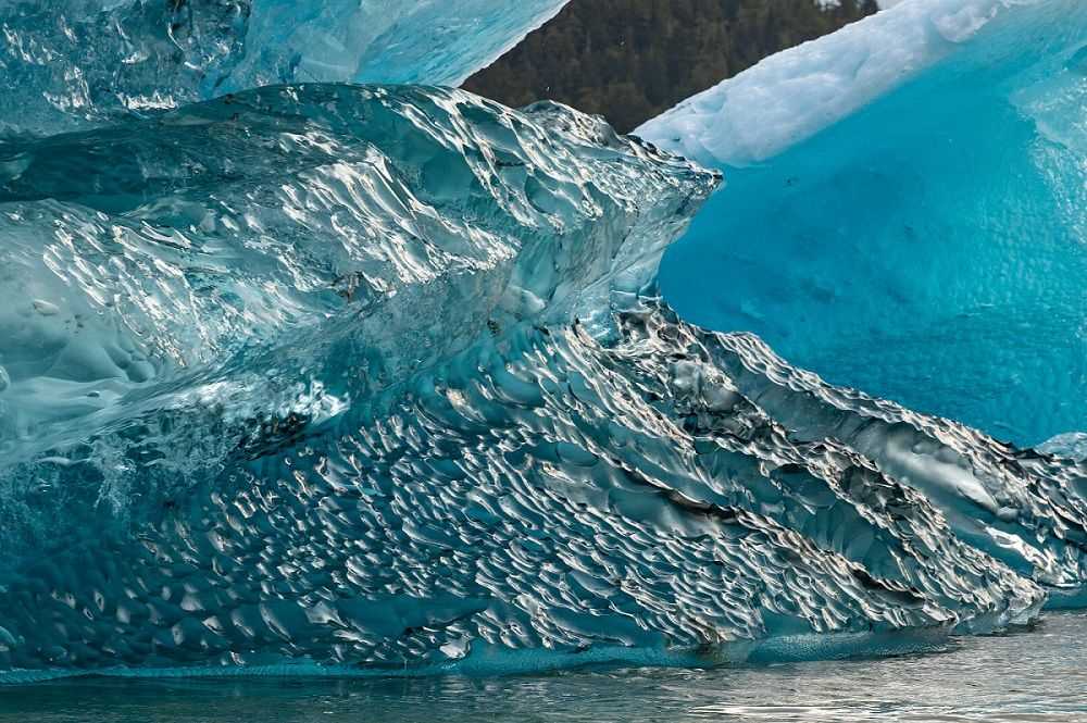 Early this morning, while the sun was creeping above the drastic walls of the glacial fjord, National Geographic Quest cruised into LeConte Bay, where we explored the beautiful icebergs meandering eight miles down from the face of the glacier. The morning light illuminated these bergy bits with their brilliance, showing their intricate patterns of melting and underwater erosion. We witnessed these massive icebergs breaking and calving, twisting and rolling as they find their new position of equilibrium.